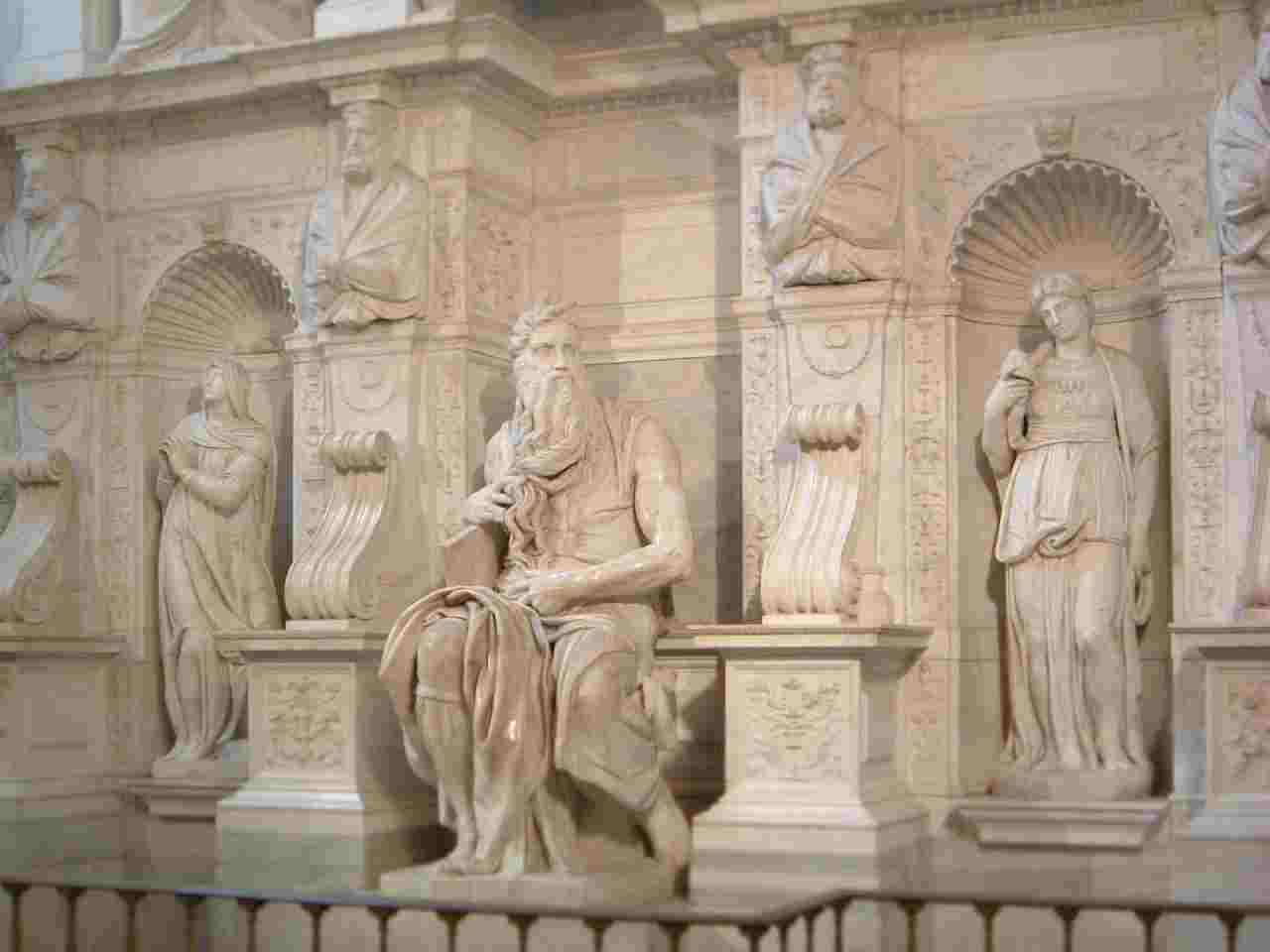 40年後、彼が70歳の時に一応完成としたこの陵墓は、結局モーゼと左右の女性の3体だけになってしまった。