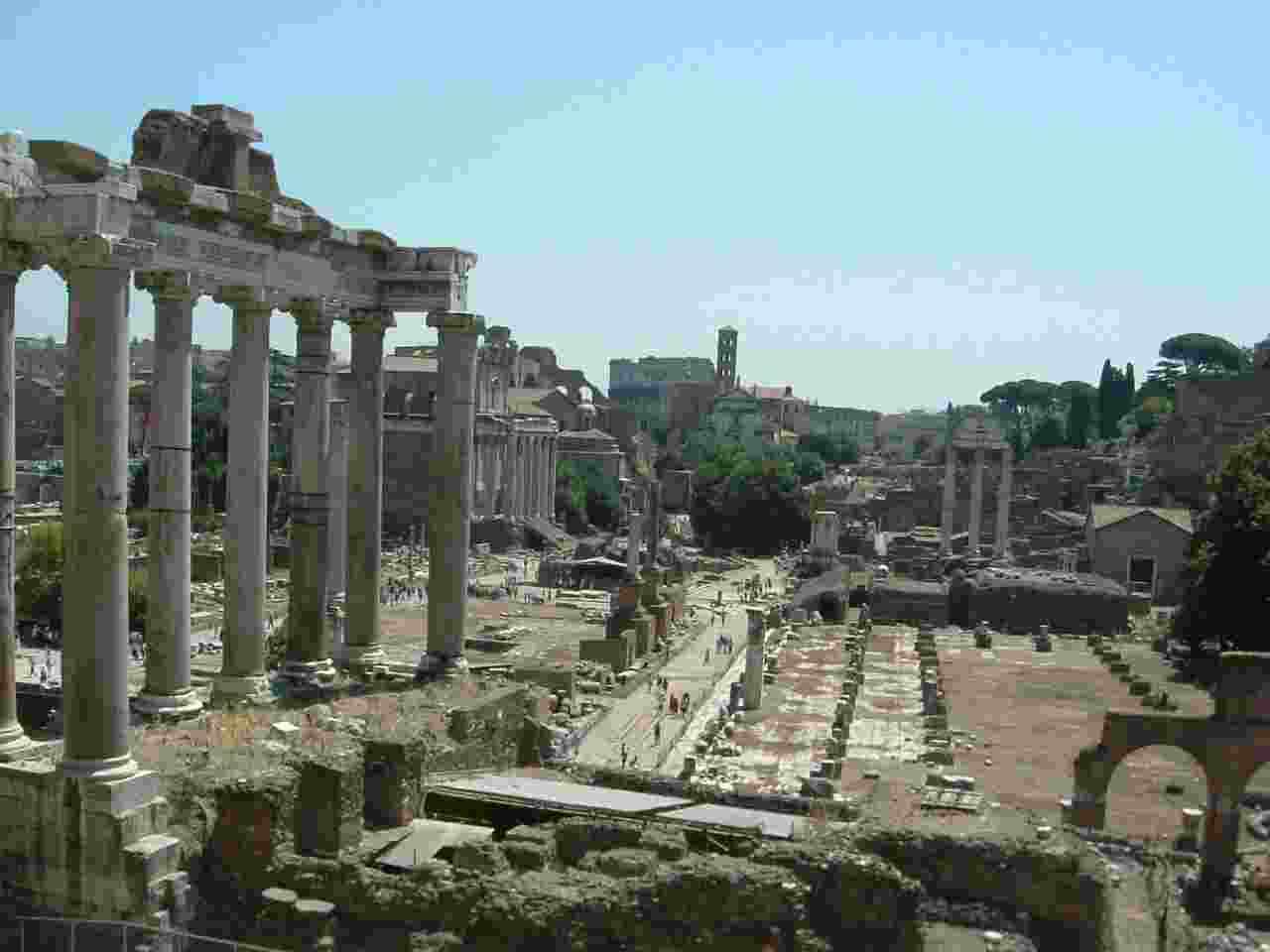 午後の日がぎらぎら照り続く、フォロ・ロマーノ。