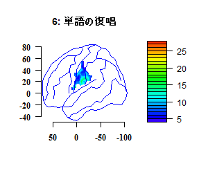 MNI空間のZ座標で15-30の高さの中心後回周囲では、単語の復唱 (subtest 6) がもっとも判別できる課題だった。一方縁上回病巣は文の復唱障害を特徴とした。