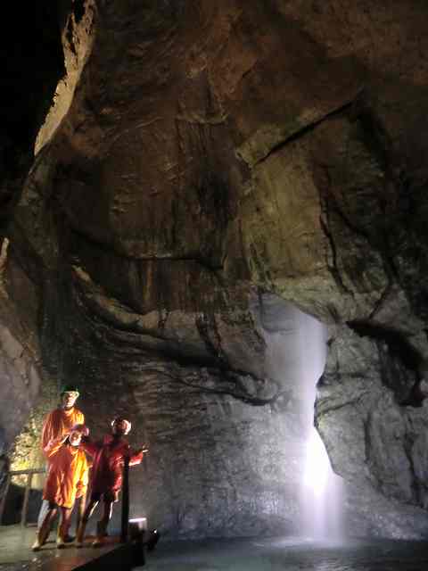 28日は仙人峠道路途中の滝観洞を探検。往復1.4km。小4の甥と小2の娘は大喜び。